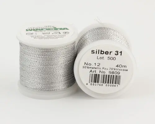 silver 31/9809 METALLIC №12 металлиз. полиэфир, 3-х слойная нить для вышивки и плетения, 40 м
